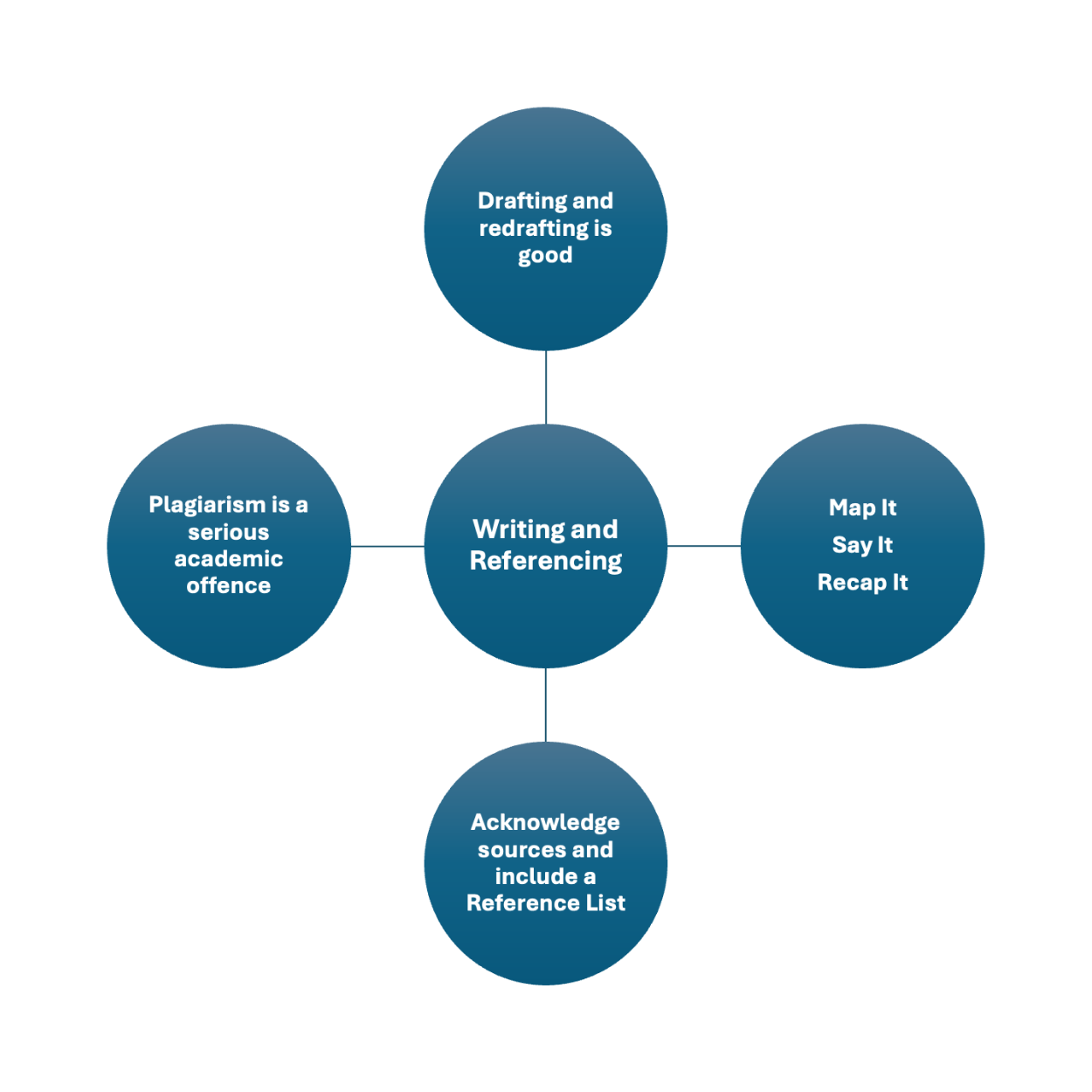 Referencing affirms the growth in a student’s independence and autonomy as a learner and is also part of the process of demonstrating their understanding. There are a lot of unforeseen issues with commercially available essays and with an uncritical reliance upon AI-generated or AI-supplemented material. If a student cannot prove the originality of essay content – through their research notes, planning, and draft work – there is a significant missed opportunity for improving their own learning. There are also negative consequences to claiming the work of others, without due acknowledgement.