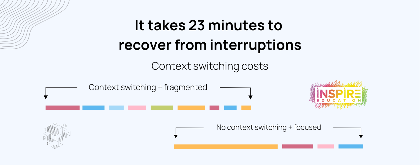 Gloria Mark, Professor of informatics at the University of California, found that it takes an average of 23 minutes and 15 seconds to get back to the original task after switching.