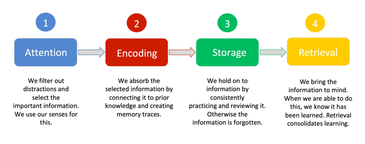 By completing these four stages, learners can make sense of, grasp and retain new knowledge. But patience and persistence is crucial. It may seem counterintuitive but learning is meant to have a level of desirable difficulty (a topic we will revisit in a later blog).
